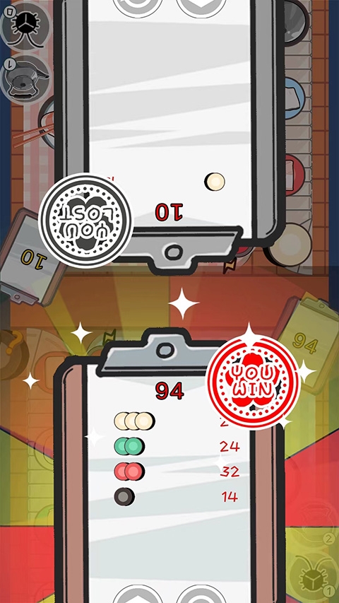 友情对决是一个可以随时随地双人畅玩的益智休闲题材小游戏,游戏的画面设计十分独特,采用了简洁清新的设计风格,整个游戏界面以明亮的色彩为主,给人一种轻松愉快的感觉。