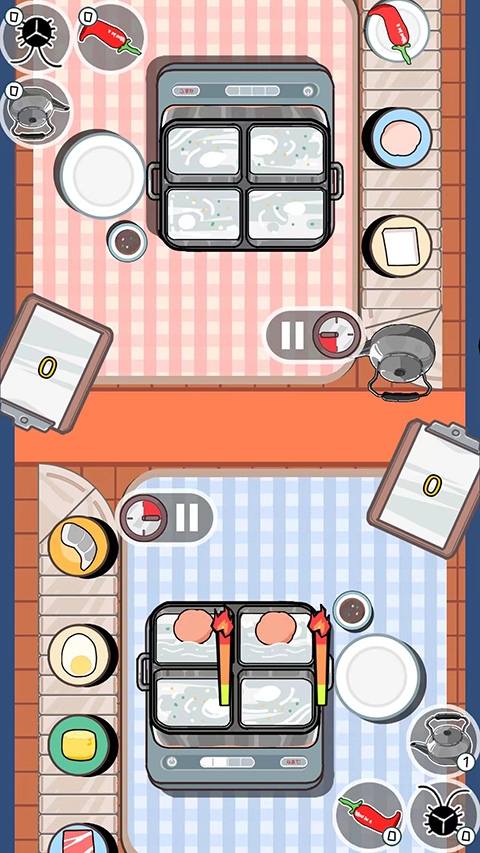 4、当桌子上出现蟑螂的时候,我们要点击消灭,