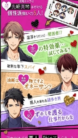 守护你的5位角色,各个都是身份特殊的“坏人”,性格各异、魅力十足,涵盖抖S、冷酷型、迷之黑暗医生等多种类型,满足不同玩家的喜好。