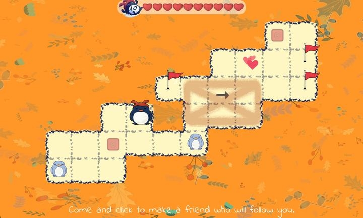 -当玩家在蛋旁边时,点击蛋可以让你选择将其孵化成企鹅,或将其推向相反的方向。被推动的蛋会一直滚动,直到撞到障碍物或地图边缘。