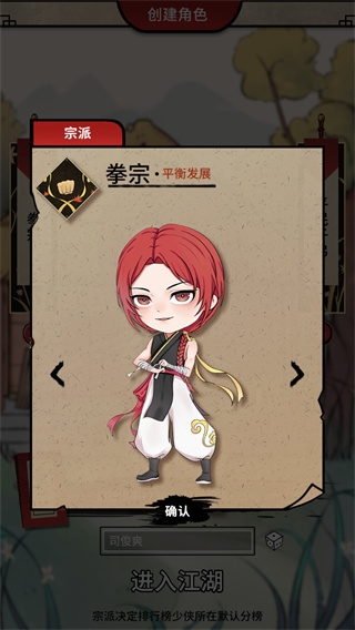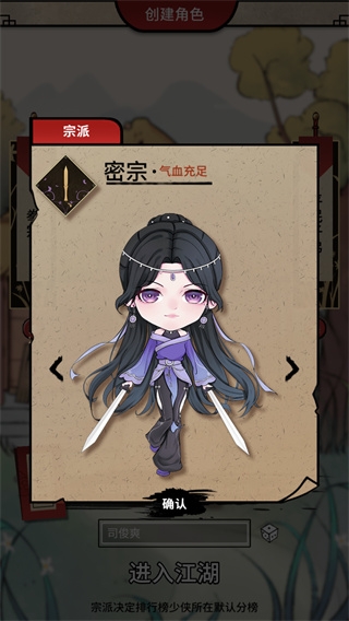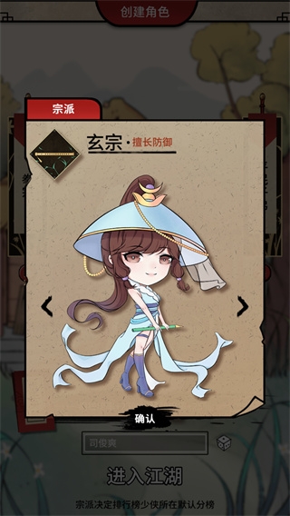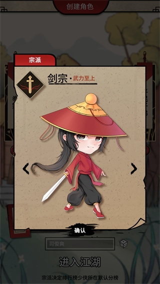 3、为你的侠客选择宗派、出生,以及定制一个好听的名字,然后进入江湖