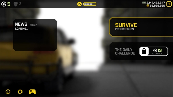 6、在前进过程中会有一些任务可以完成,完成任务后会获得点数,当玩家触碰障碍结束挑战时,这些点数可以解锁不同的武器和车辆。