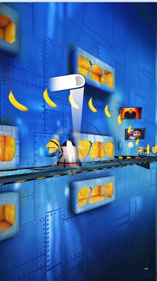 3、玩家将在游戏中操控小黄人不断跳跃、移动、闪躲障碍收集香蕉。