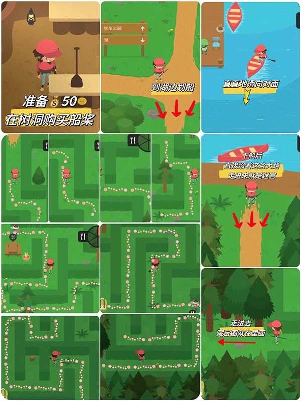 6、走迷宫:50去湖边划船去对面走迷宫,在迷宫的尽头
