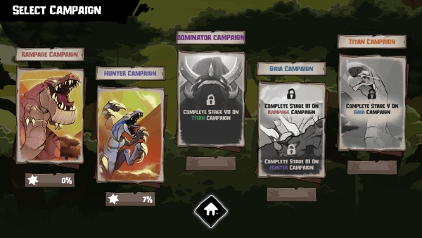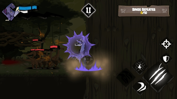 1、2d横向卷轴模拟动作格斗游戏中,扮演强大的霸王龙、破坏性的食肉牛龙、狡猾的猛禽或有毒的双脊龙!