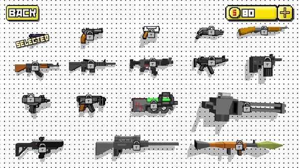 6、闯关失败或者通关都可以获得金币奖励,金币可以用于解锁武器,在主界面点击右下角的按钮可以进入武器页面,消耗一定数量的金币就可以解锁新的武器。