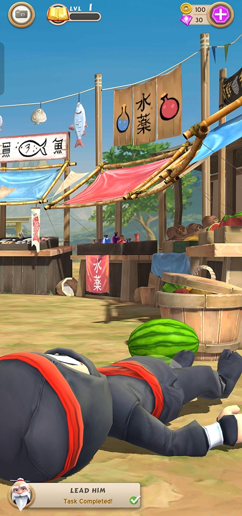 任务5:给他挠痒痒,然后小忍者会倒在地上,继续挠痒痒逗他,直到他忍不住躲开为止,这样才能完成任务哟。