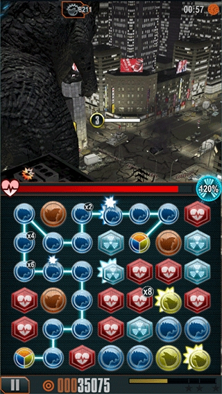 哥斯拉破坏3是一款独特且极具吸引力的休闲益智类游戏。在游戏中,玩家将面对庞大的哥斯拉,并通过消除小球来释放技能。你要与体型巨大的哥斯拉战斗,怪兽的攻击力就会越高,一款结合了多种玩法的游戏。