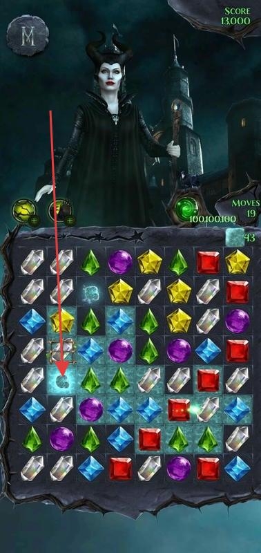 1、游戏名为【MaleficentFreeFall】,通过消除宝石推进游戏。