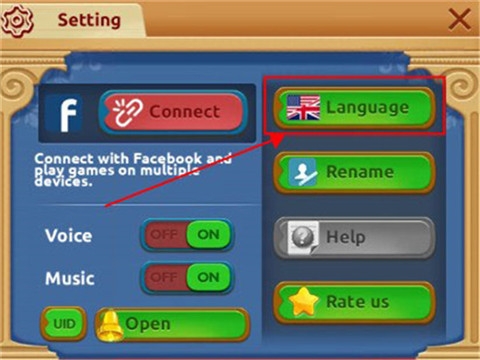 2、完成教程后回到主界面,先打开右上方的“齿轮”设置,你会发现一个“语言”栏,如下图箭头指向位置处