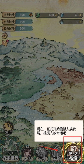 4、材料充足的话就可以点击命运推演开始模拟人类命运了。