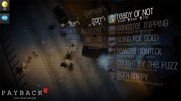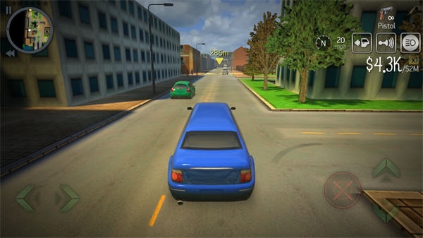 3、游戏主要是从鸟瞰的角度进行的。你可以在洛杉矶街头轻松地开始自己的枪战大片;