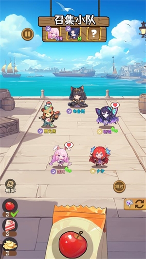 2、进入关卡后可以消耗食物招募队员,不同的食物可以招募的角色是不一样的。