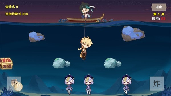 黄金矿工是一款以原神为题材的黄金矿工游戏,玩家可以在游戏中操作角色游玩类似于黄金矿工的游戏玩法,大家可以在这里完成各种游戏关卡的挑战,将在游戏里扮演魈来抓取足够的矿石,在规定次数内获得任务宝物就可以通过关卡,这里的每一个关卡玩法都是不同,喜欢的朋友欢迎前来下载。