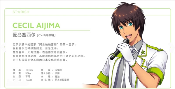 来自永久冻土的异国之地西尔克帕雷斯,出生在一个世代侍奉女王的伯爵家庭,形容举止高贵优雅。运用这份能力,他也从事执事偶像工作,喜爱甜食,总是随身带着砂糖和炼乳。