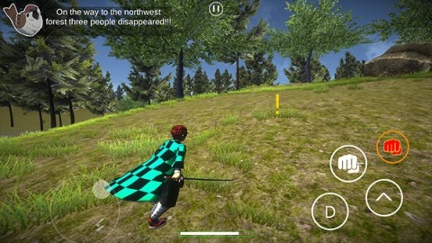 4、通过在屏幕左侧滑动,可呼出角色的移动按钮。左上角会显示你的任务目标,找到对应的感叹号,控制角色勇往直前,奔向目标。