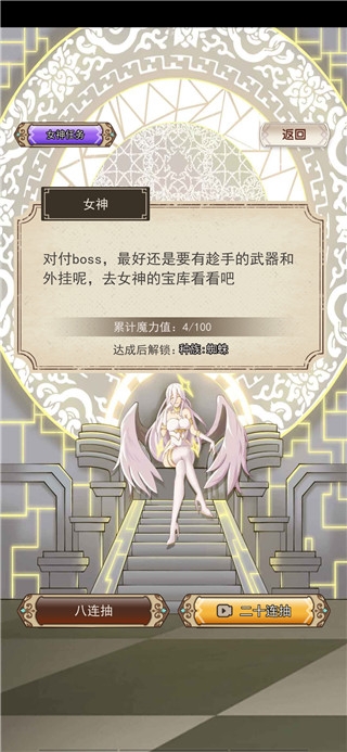 ③声望、魅力、金钱:建议集中培养一种(推荐声望、比魅力和金钱好堆太多。开宝箱时主意了,并不是看广告全选最好,如果你想堆声望,那就决不能选魅力和金钱,这会导致打boss时出现另外两个低伤害的选项),分别对应说教、电眼、收买三种攻击手段。(每种属性大约突破50左右才会出现这种攻击选项,属性越高伤害越高)