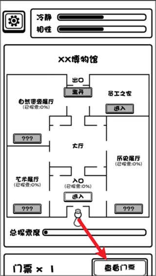 5、最后依次把所有的展厅看完,在观赏的过程中根据问题回答直到游戏结束为止即可。
