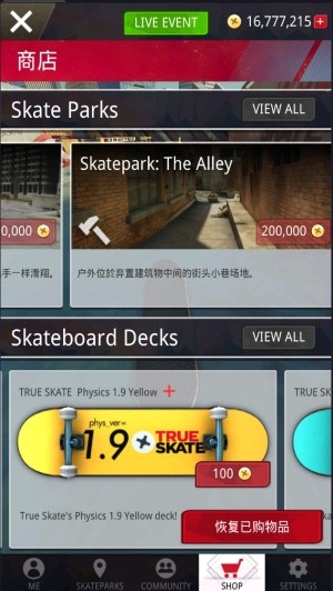 6、商店:通过挑战关卡可以获得金币,能够在商店中购买各种滑板,解锁更多的主题场景!