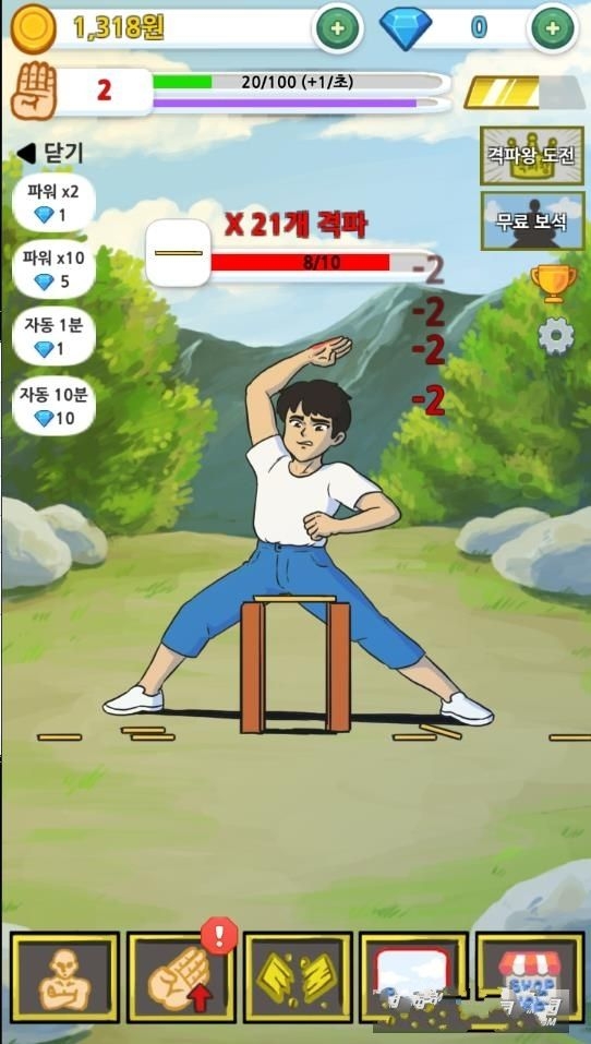 手刀击破王是一款单机动作类的游戏,通过手刀来击碎各种物体,有着卡通画面和街机风格,喜欢看武侠小说的朋友一定知道铁砂掌,这一次你将在游戏中使用这一绝招,不断的闯关劈断更多物品,每一次的难度都会增加,玩家需要强化自己的手掌力量才能完成更多任务,好奇的就来下载试试吧!
