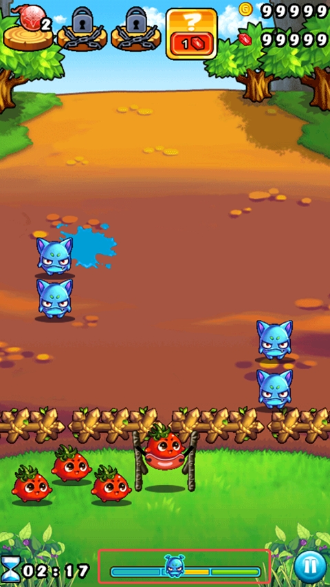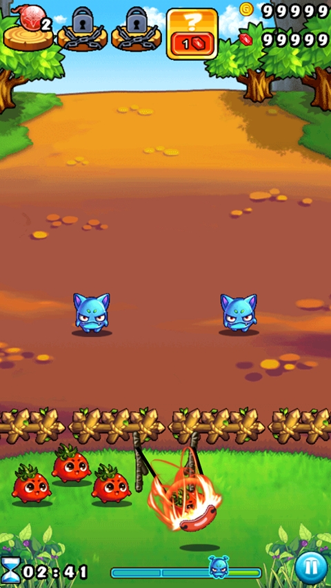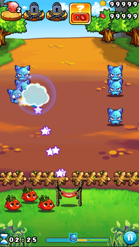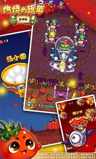 1、萌趣弹射塔防游戏,在浓浓的新年氛围中玩游戏,与燃烧的蔬菜众多角色一起来并肩作战。