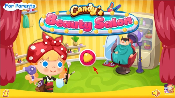 1、打开糖糖美容院游戏点击开始,进入糖糖美容院的大厅;