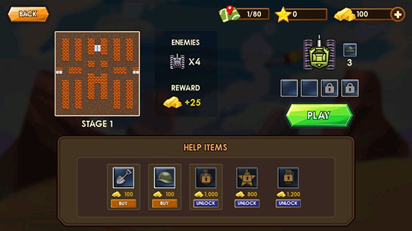 1、在本站下载安装坦克1990怀旧版后,打开进入,点击中心的“PLAY”开始游戏。