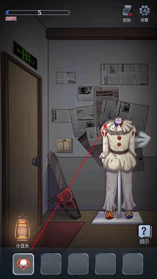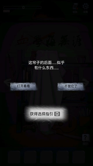 4、接着切换到右边场景,拉开布帘拿到小丑的头,选择“打开看看”。(此处有贴脸)