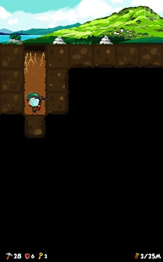 1、进入口袋矿工3游戏后,我们将从地面开始向下面挖掘,直接点击下面的土块即可向下挖洞。