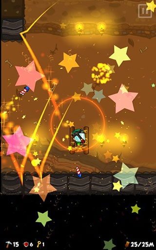 4、如果挖到了炸药,那么它就会帮助我们炸掉周围的土块,如果挖到了电钻,那么它会向下挖掘,帮我们自动钻开地底的土块。