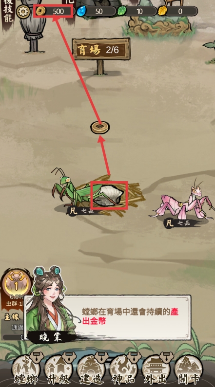 4、螳螂在育场里会持续产出金币,及时收集这些金币,可用于后续的升级、建造等操作。