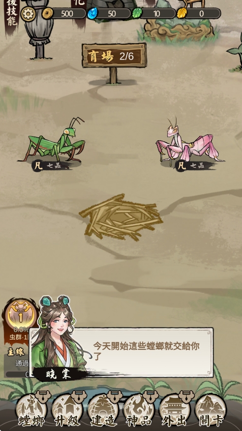 1、首先需要在本站下载安装极品螳螂,进入游戏,开启昆虫养成的冒险之旅。