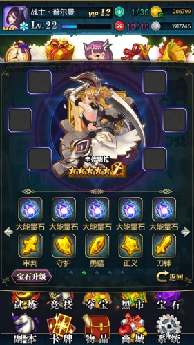 3、同一种品质的宝石也有等级之分,一张卡牌可以镶嵌六个不同类型的宝石,每一种宝石的属性加成都是不一样的。