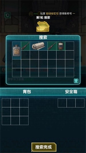 3、遇到不同的资源点可以进行搜索,可以将获得物品放入背包或者安全箱。