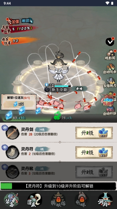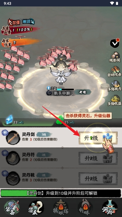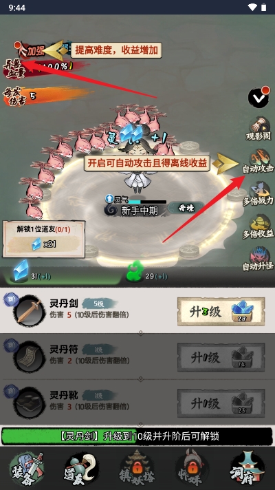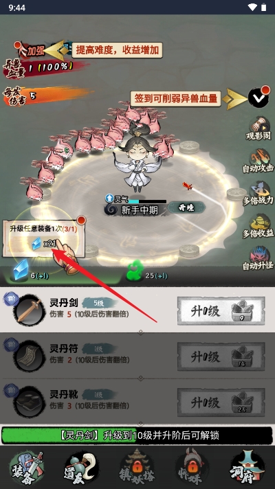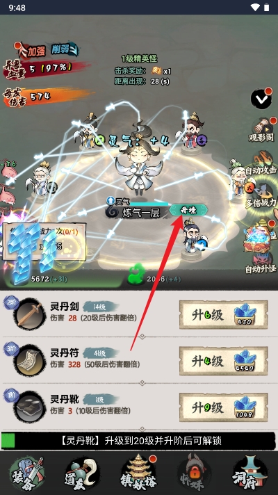 2、需要完成炼气第二层才能解锁更多的玩法,可以通过渡劫升级