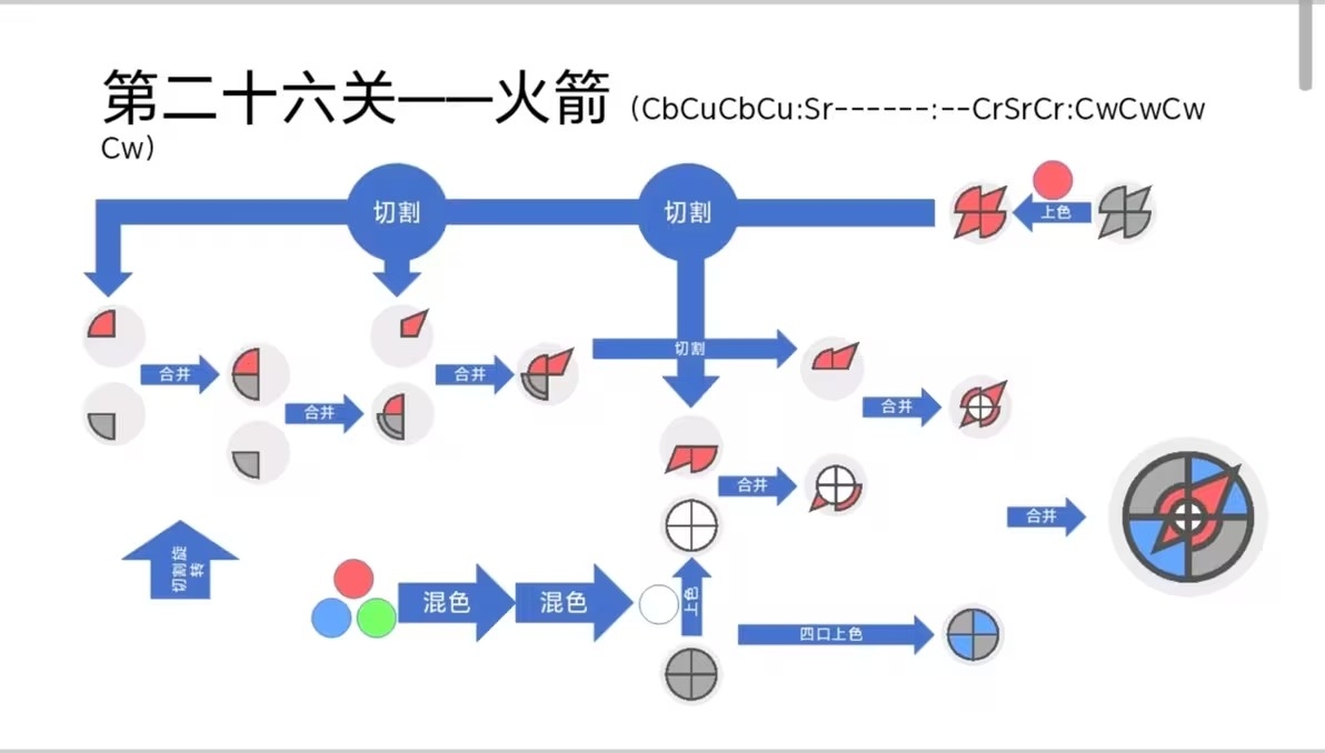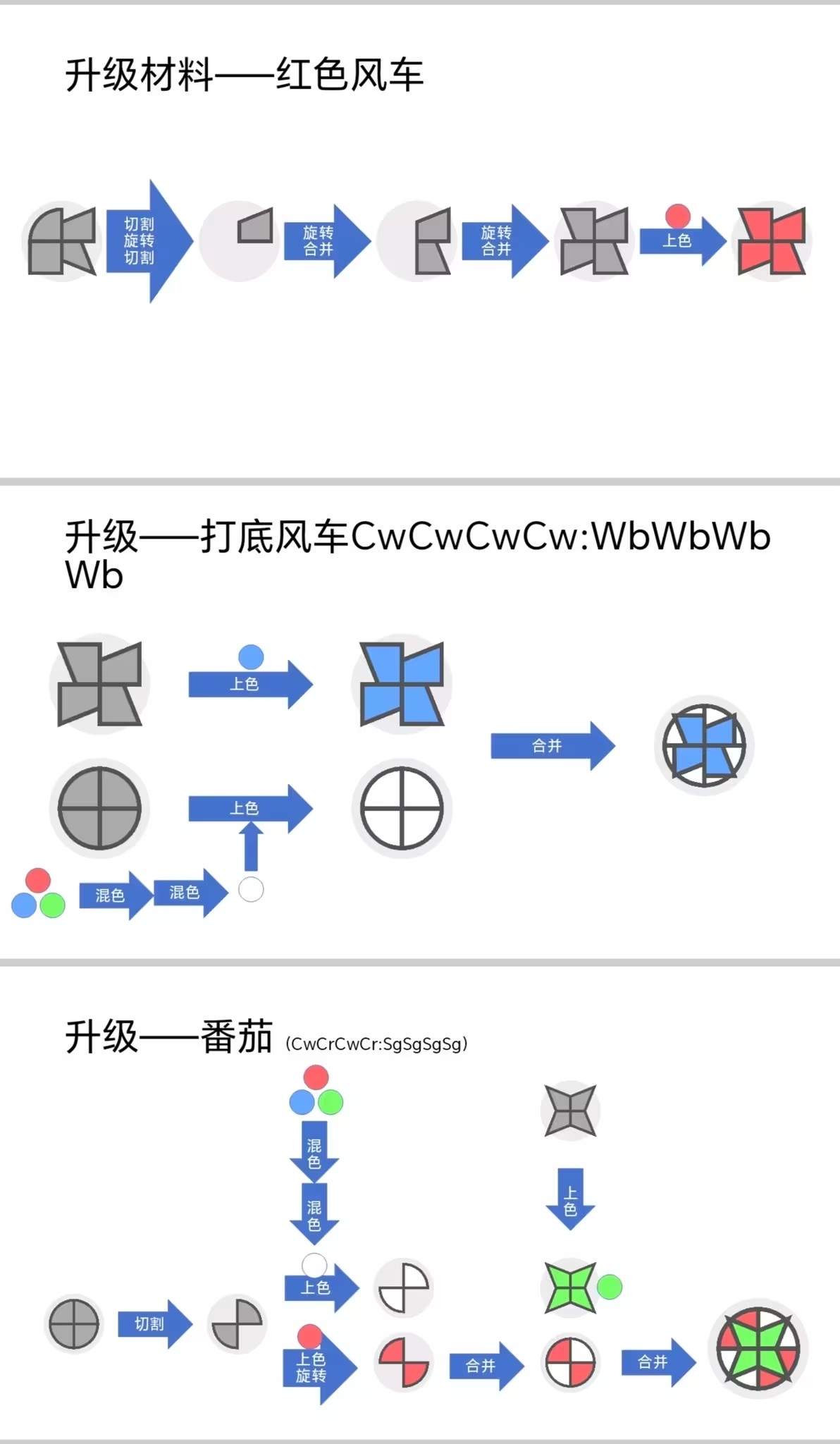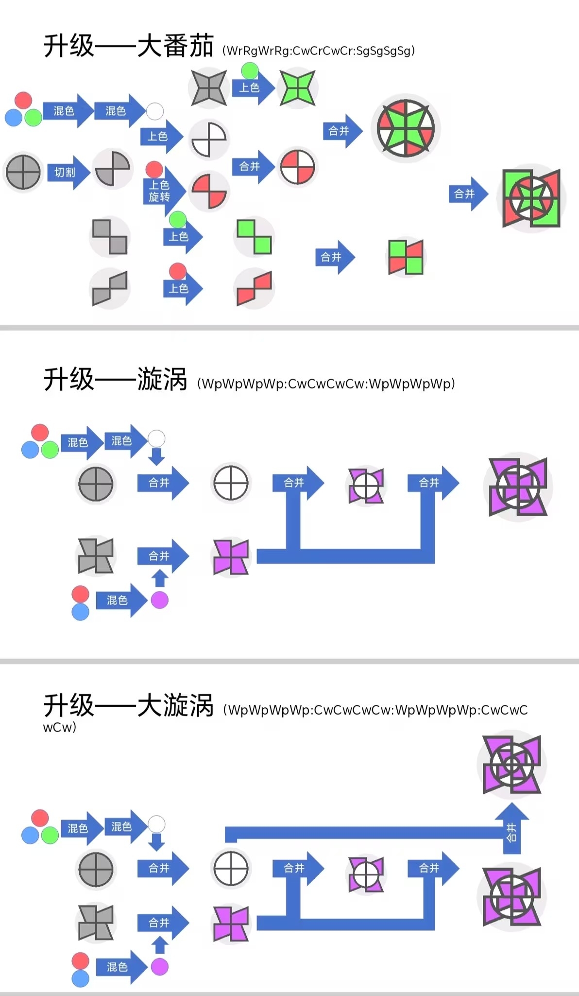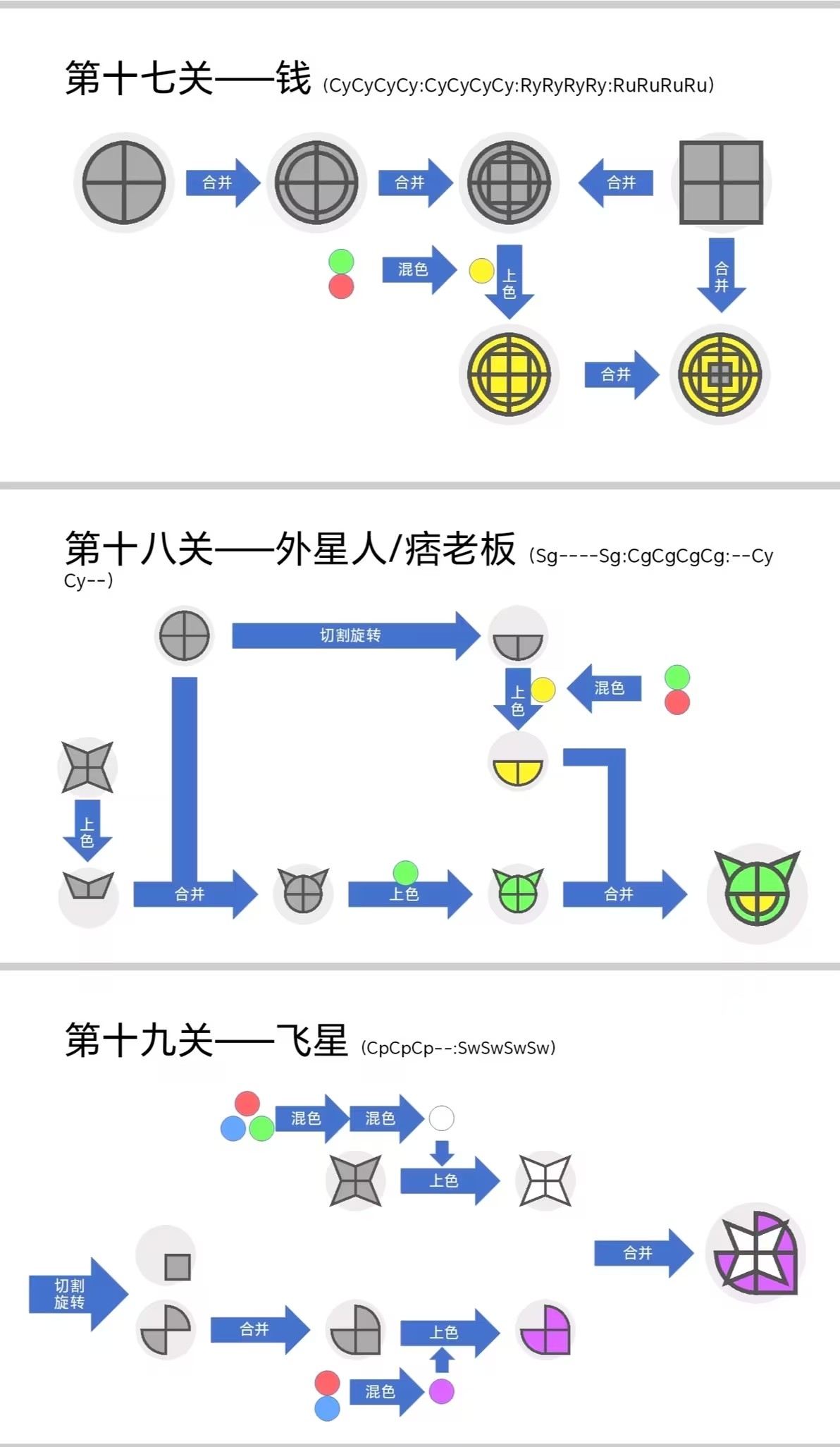 资源优化:比我第11关为例,我展示了两种合成方法,区别在于资源的使用量和工序的复杂度,特别是颜料资源。之后的通关流程大多都会按照资源最少的标准去表示。