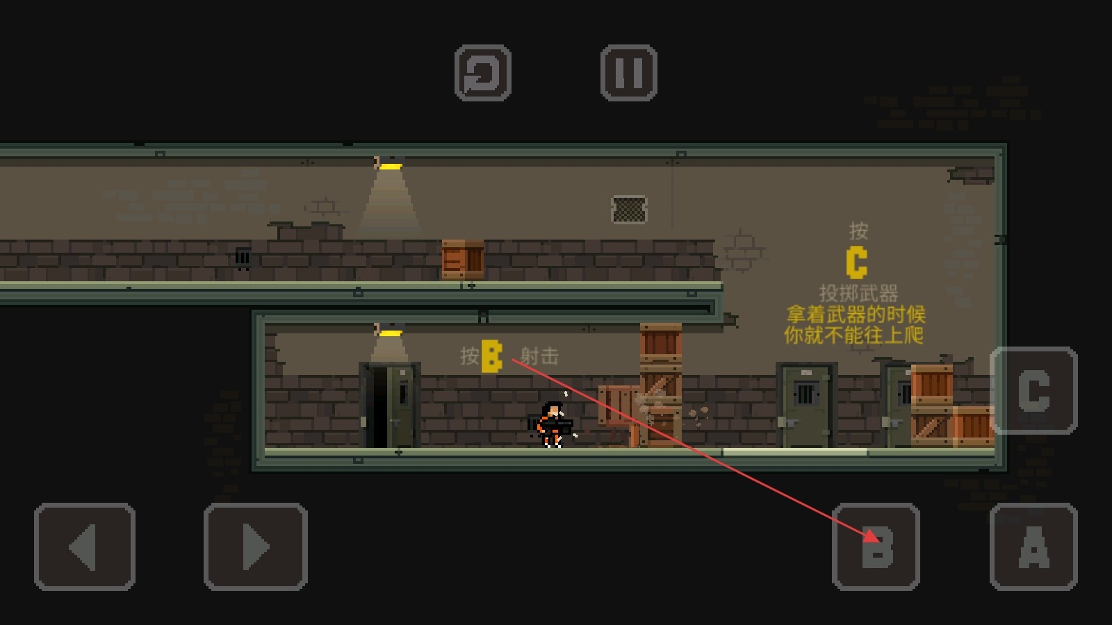 2、点击方向键移动角色,熟悉【A】跳跃、【C】攀爬操作。