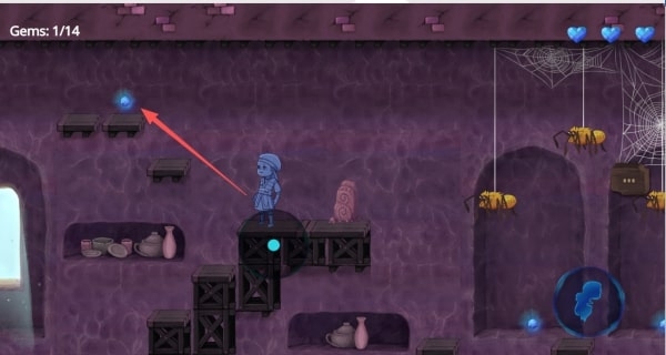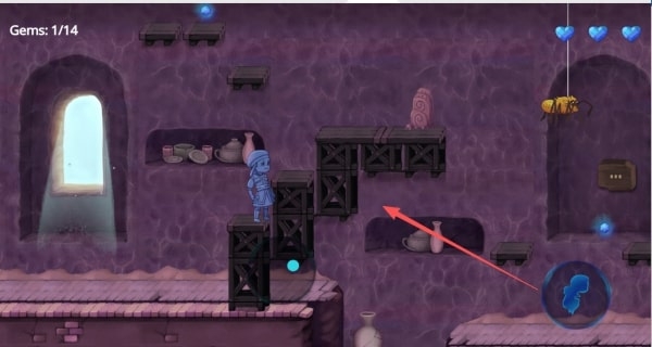 2、控制角色收集物品,顺利的抵达下一个平台。