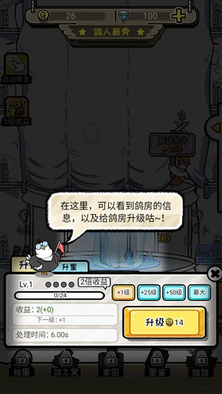 2、养殖更多的鸽子,同时还得赚取自己的收入使得养殖场能够有更多的空间。