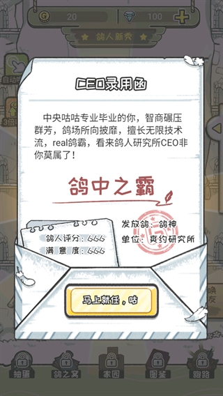 1、这是一款超级好玩又神奇的商业开发游戏,你要培养大量的鸽子出道,成为鸽子明星工厂,你就是每一个成功的鸽子明星背后的人。