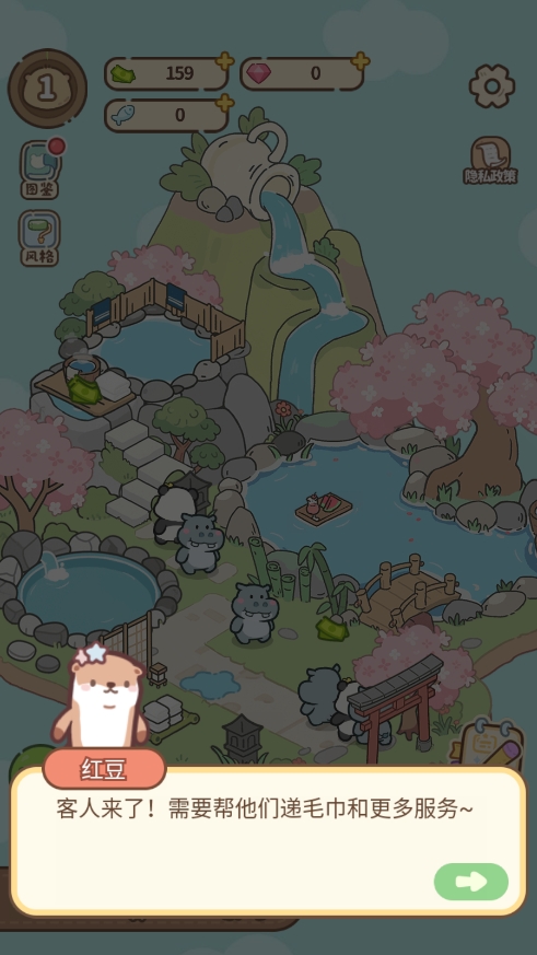 季节系统:游戏内设有季节变化机制,不同季节会改变场景氛围(如樱花盛开、雪花飘落),为浴场增添沉浸式疗愈体验。玩家可根据季节调整装饰与设施,吸引特定顾客群体。天气事件:雨天、雪天等特殊天气会触发隐藏事件,例如雨天顾客增加、雪天解锁限定装饰。玩家需灵活应对天气变化,优化经营策略。2、顾客互动与剧情活动