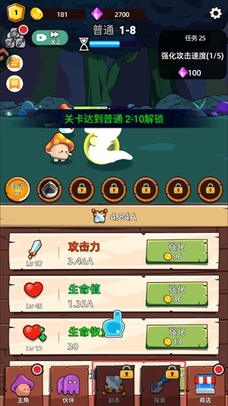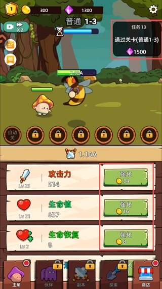 1、进入游戏开启自动攻击,右上角可以看到任务,打怪获得金币直接升级属性