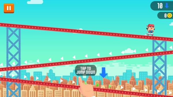 3、游戏过程中,看到提示【TAPTOJUMPDOWN】时,点击屏幕使角色下滑,完成关卡任务。