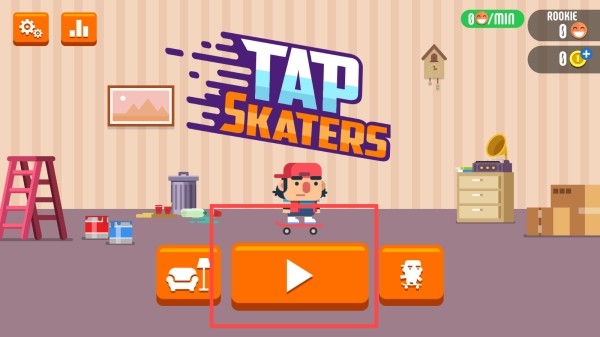1、打开【TAPSKATERS】游戏,点击主界面橙色播放按钮开始游戏。
