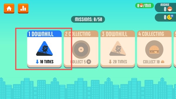 2、进入关卡选择界面,优先选择【1DOWNHILL】关卡。