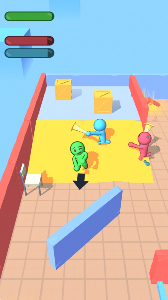 1、只需滑动屏幕就能控制角色去战斗,拿起场景中的各种物品,击倒所有对手并赢得战斗胜利。