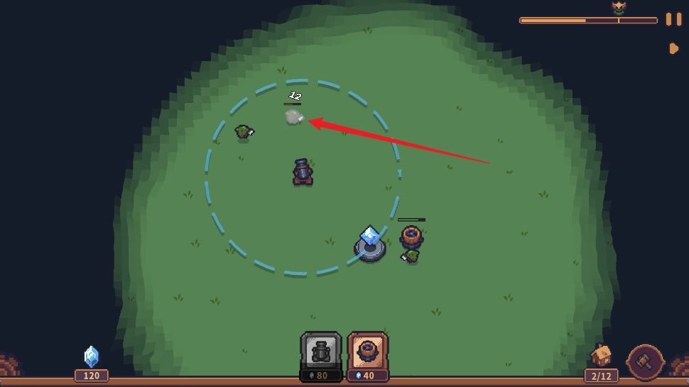 6、当敌人入侵时,及时建造加农炮进行防守。蓝色范围为其攻击区域,合理布局可以最大化火力覆盖。