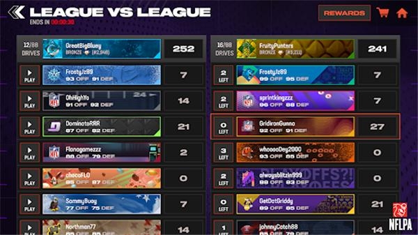 2、顶级的NFL赛事带来多样的选择,参与不同国家的竞技来攀登排行榜,体验美式足球竞技的玩法。