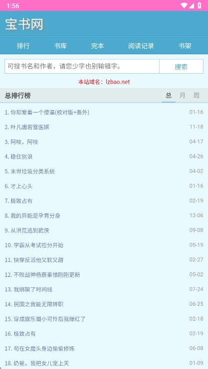 宝书网是一款深受大家欢迎的免费小说网,不需要花钱就能直接观看国内各大平台的海量热门网络小说资源,没有广告,能够为大家提供超多书源,各种小说,漫画,期刊等一应俱全,可以满足日常阅读需求,大家可以随时线上搜索自己喜欢的小说资源,智能收藏,记录阅读历史,开启极致舒适的阅读体验!