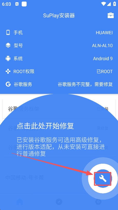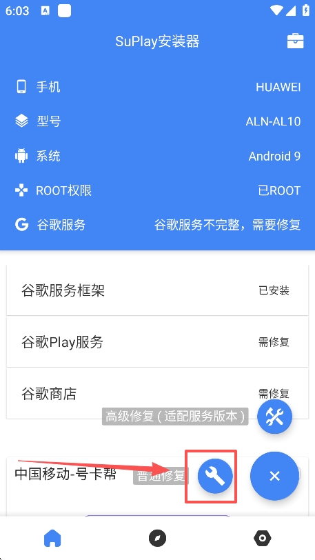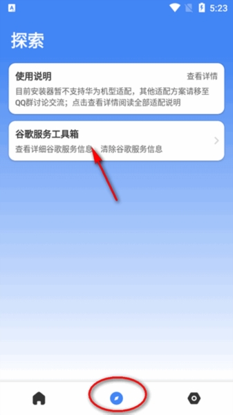 1、SuPlay安装器点击中间探索进入到谷歌服务工具箱。